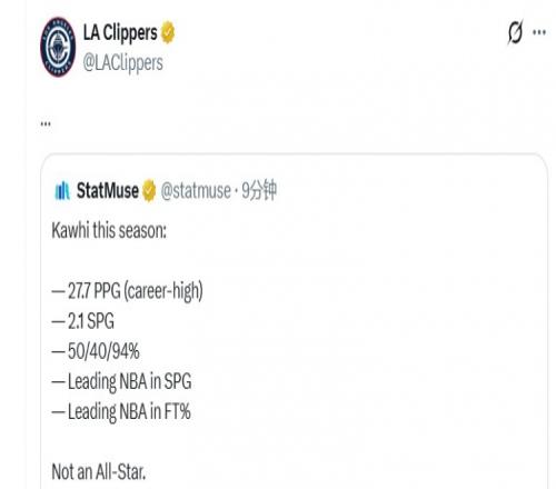 真无语了!东道主快船官方转发伦纳德本赛季数据配文: